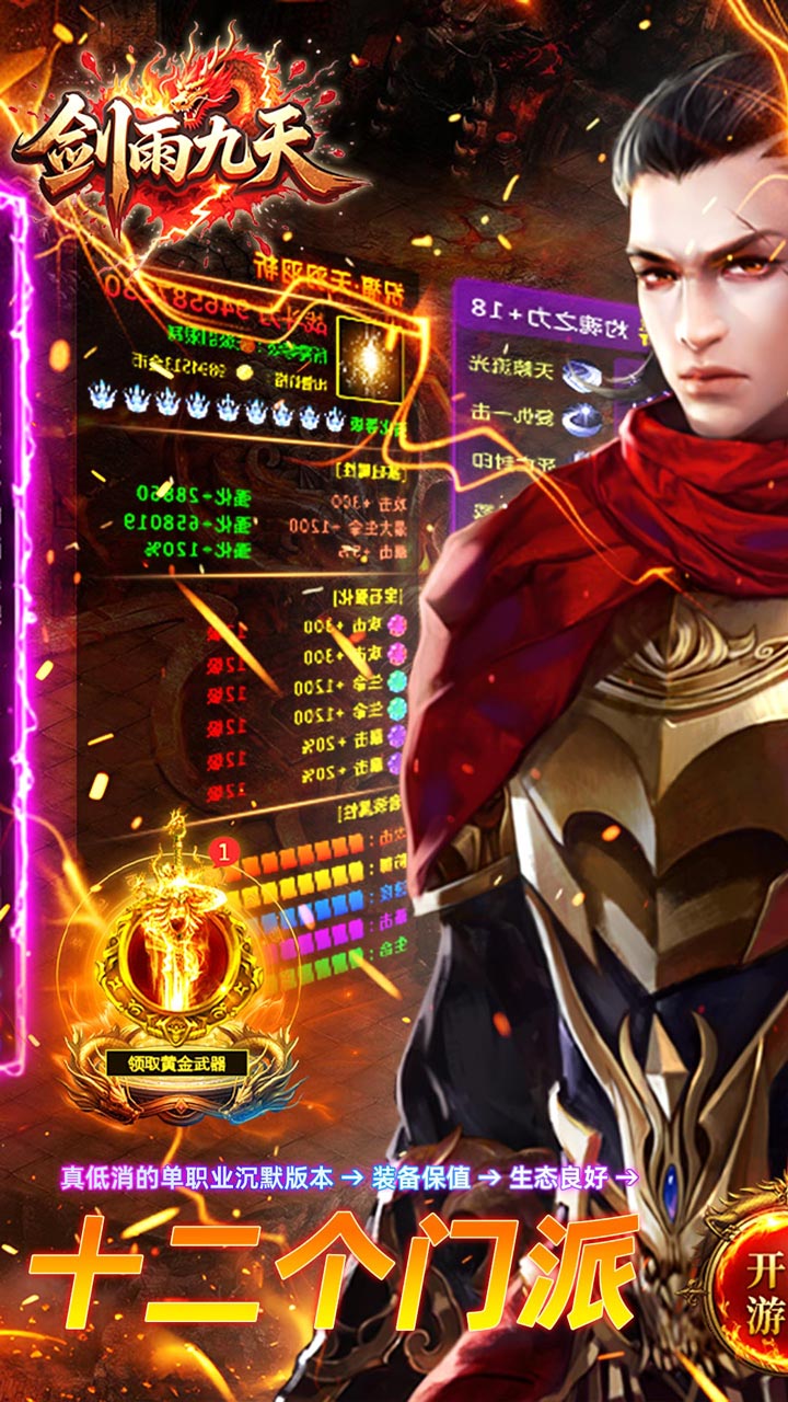 下载《剑雨九天》特色玩法[充值券系统] 每天可打200-300元充值券,首次登录游戏送1000充值券,可用来购买大部分充值礼包和在线充值,还能增加累充,领取每日充值奖励(每天必做,材料非常多);十二种门派,体验不同的感觉,多样的选择,丰富的体验!