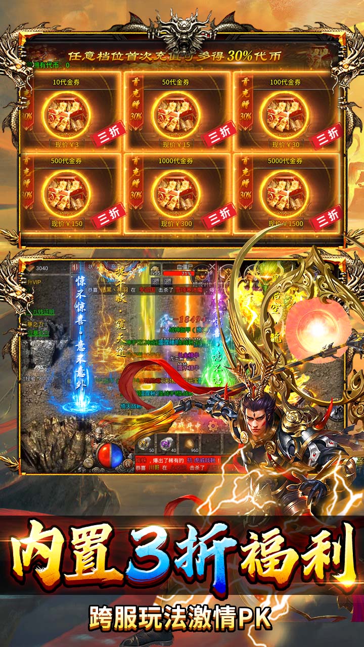 下载《热血西游》是一款无限刀题材的传奇游戏,内置三折充值系统,游戏特色是开局可选仙/魔/人三种阵营,转生还能选择天命可自由搭配属性无论是pk还是砍怪可自行搭配,每天赠送648充值卡首次使用可激活双倍钻石返利,更能激活线上累充活动,大量福利等你获取,创角送自动回收/拾取和3000万元宝,还有海量材料和宝石宝箱,传奇画质精美,福利满满;线上更有超多种不同的活动供你获取资源;内含丰富的跨服玩法;0氪也能变大佬。