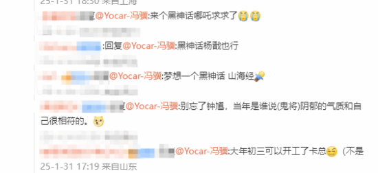 对此玩家们表示,已经大年初三了,该开工了卡总!还有人提到,别忘了三部曲的《黑神话:钟馗》!