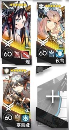 煌(精二60级)、塞雷娅(精二60级)、夜莺(精二60级)