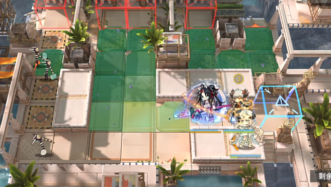 如图所示,开场依次部署煌(朝左)、夜莺(朝左)、塞雷娅