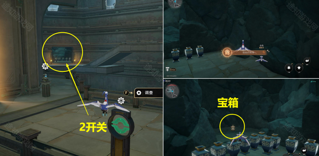 3、接下来我们继续操纵技巧鸟开启机关,先调查1再调查2