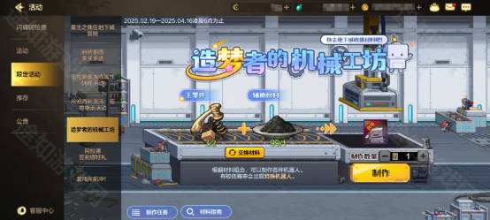 兑换机器人零件和机器人火药材料后,可用于“造梦者的机械工坊”活动制作机器人,可以获得大量炉岩炭、混沌之息等奖励。