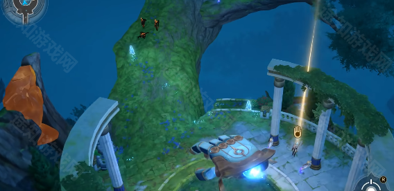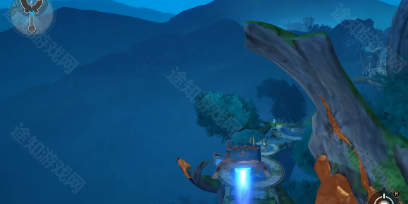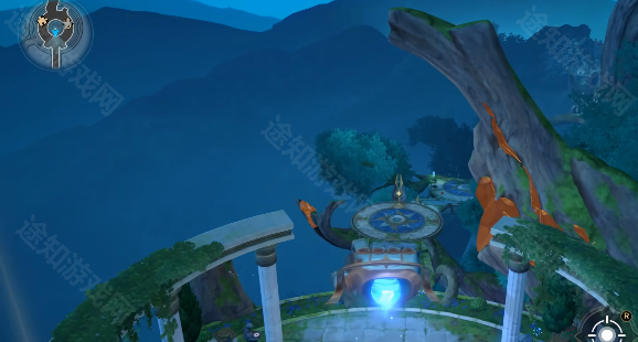 2、来到前面的传送机关,传送到对面,往前走会看到操控机关,和它交互。