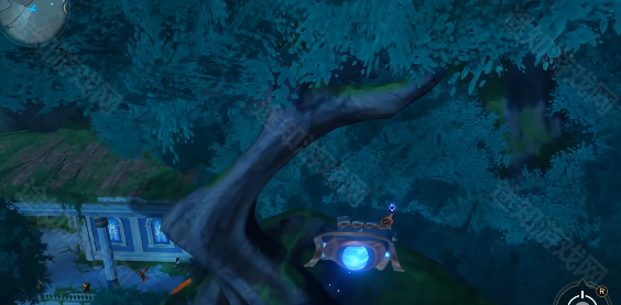 4、飞过图中的树干之后,右转就可以看到一只怪物在前方的树干上。