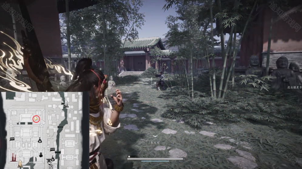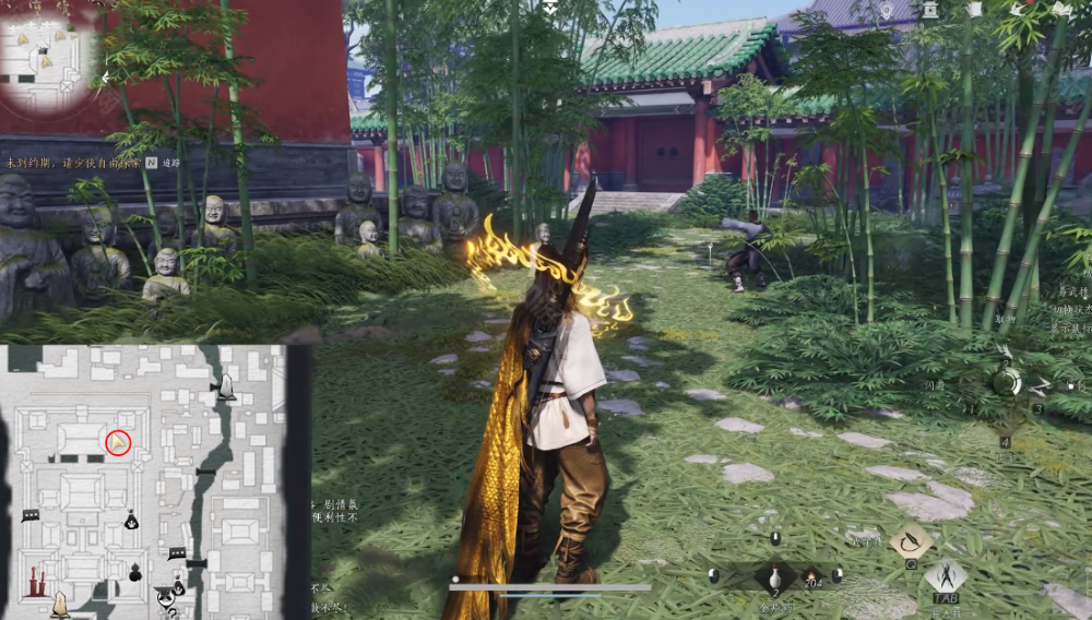 2、来到大相国寺之后,跟随地图指引,在寺庙竹林中,我们会看见一个练功的和尚。
