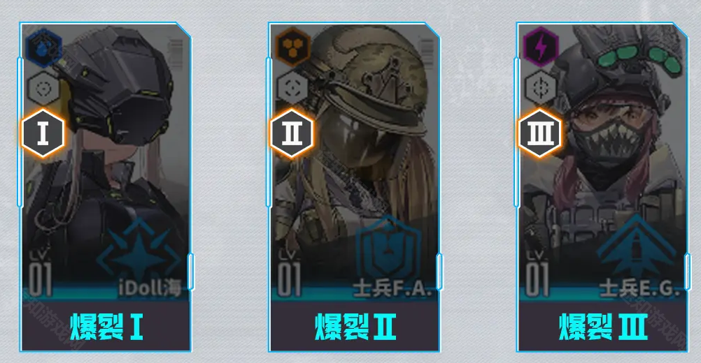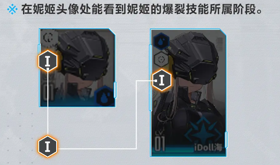 游戏战斗中分为爆裂I,II,III三个阶段,每位妮姬的技能所属爆裂阶段不同。