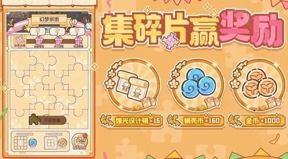 活动期间,完成日常事务后将能获得拼图碎片,收集指定数量的拼图碎片后即可开启拼图盲盒,完成拼图还能获得烛光设计稿、蜗壳币等奖励