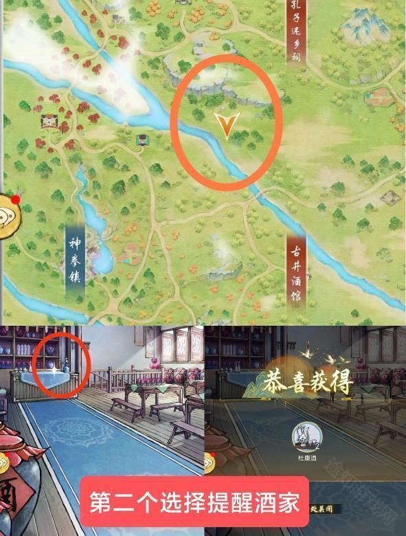 位置5:选择【提醒酒家】,获得杜康酒x2