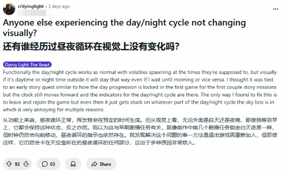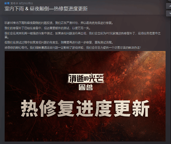 据一些玩家反馈,游戏出现了“室内下雨”和“昼夜颠倒”这种影响游戏体验的bug。