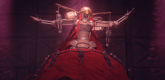 “故事框架最初始于‘Simone(西蒙娜)’这个BOSS——一个在舞台上的巨型女性机器人……我刻意加入了让玩家无法感同身受的特质,《机械纪元》的剧情正是围绕着这些难以理解的情景展开,我追求的是自己都难以把握的叙事。”横尾表示。