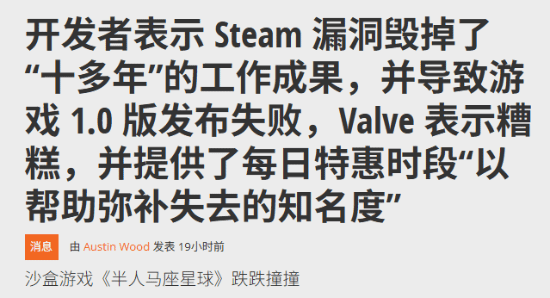 在得知Bug真相后,Lechat没有在社交媒体上大发雷霆,Valve也表示会弥补损失,提供平台“每日特惠”曝光位,以“补偿首发日失去的曝光”。