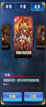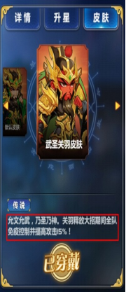 游戏内大多数武将都只有一个皮肤通常都为伤害加成和伤害减免等基础属性,还有一些像关羽这种皮肤属性比较特殊很重要的,优先选择关羽这种,还有一种就是像猴子一样有两个皮肤,比如诸葛亮两个皮肤属性是一样的,猴子这种就根据自身情况来,喜欢pve的可以选伤害加成,喜欢pvp的就选能量减少这种功能性的