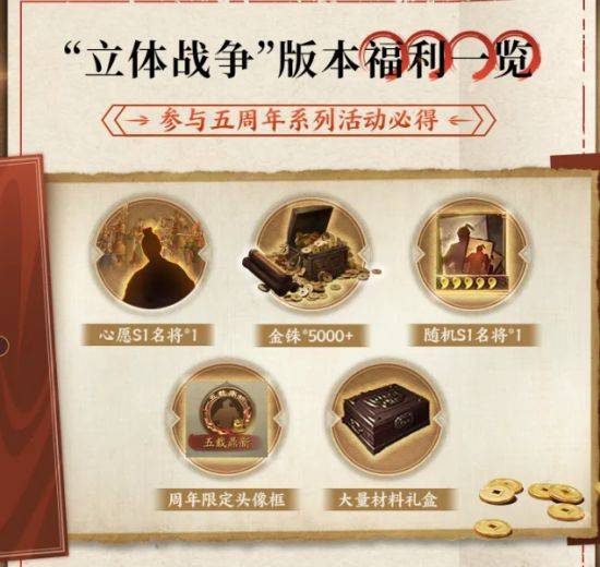 而在保证玩法的上限后,游戏又通过主题服来提升玩家的体验下限,以此来拉新和回流。玩家能靠各种福利运营活动,比如说“五载心愿阁”免费拿到核心武将,快速起步。