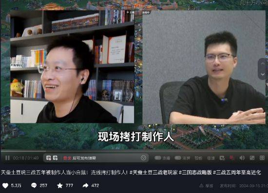 而且在为三战站台的各种玩家中,这次你也能看到一些意料之外、情理之中的熟悉面孔,比如著名的网文作家天蚕土豆。早在五年前,就有不少人知道土豆在玩三战,还充了不少钱。这次新版本上线,他就借这个机会和制作人连线,狠狠拷打了一波。