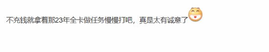 此外,游戏的回归福利也被众多玩家抨击“逼标准环境玩家氪金”:游戏上线后没有任何卡包,玩家自选一套卡牌后,只能不断匹配做任务才能开启之后的回归奖励任务线;回归赠送的23年全部金卡时效性非常短——明年就有大量卡牌推出标准环境,被很多玩家直呼蒙骗。