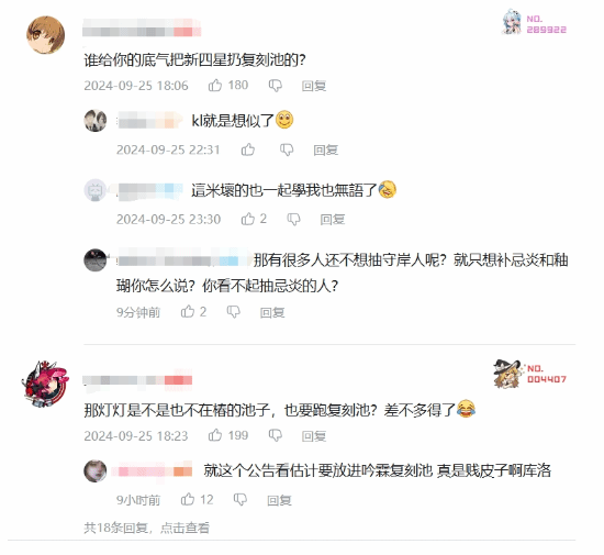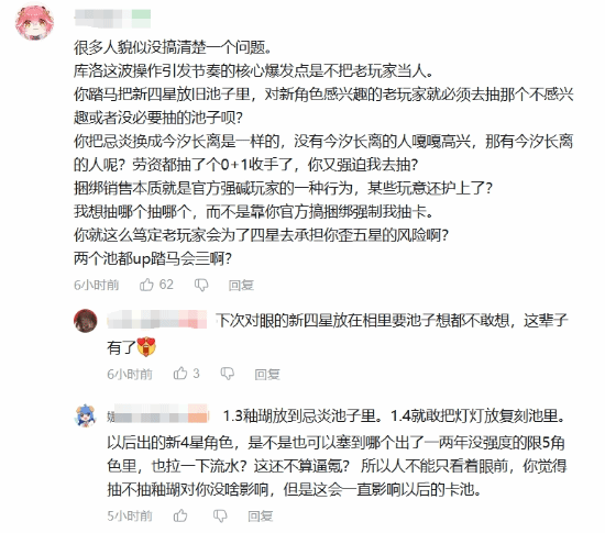 在官方公告的评论区,已经聚集了大量的玩家评论,表达了对这次卡池安排的不满。