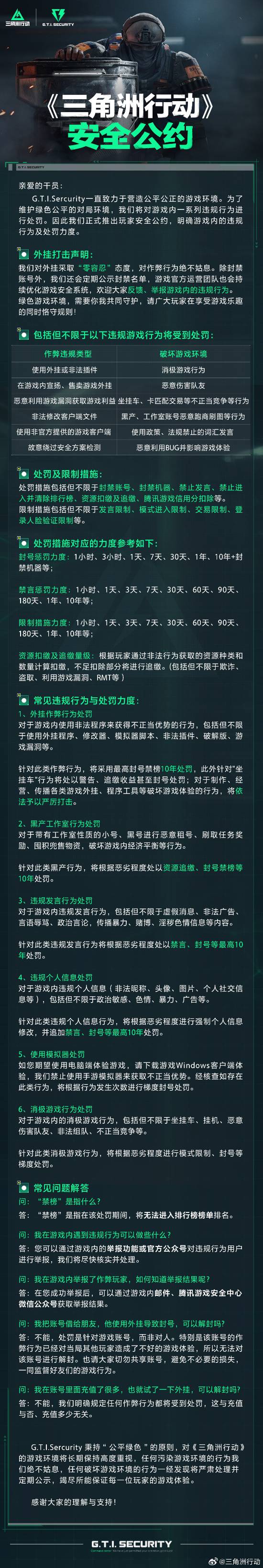 同时,官方还发布了安全公约,誓言严厉打击外挂行为: